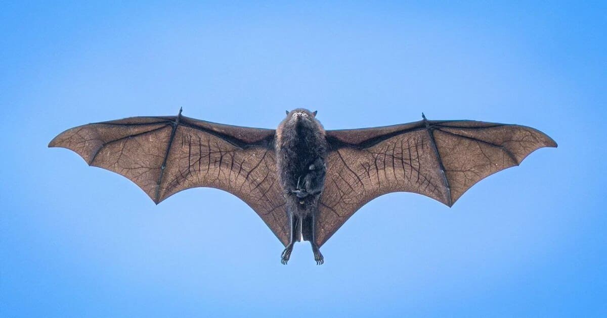 Фотограф сделал уникальный кадр: летучая лисица несет детеныша в полете