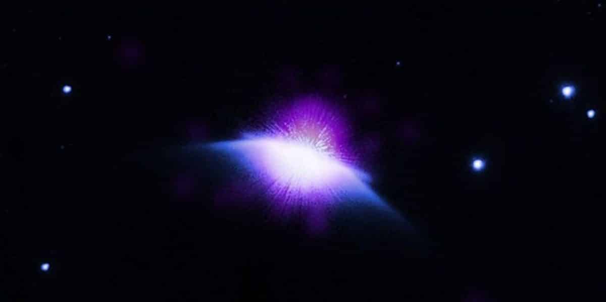 Chandra зафиксировала, как этот стремительный поток формирует астросферу — гигантский пузырь, окружающий звезду. Он возникает в результате столкновения звездного ветра с более холодным газом и пылью межзвездной среды. При этом вещество нагревается и начинает излучать в рентгеновском диапазоне, что и позволяет обсерватории его обнаружить. Диаметр пузыря примерно в 200 раз превышает расстояние от Земли до Солнца, что делает эту структуру поистине колоссальной. В передней части астросферы формируется изогнутая ударная волна — подобно гребню волны, возникающему перед движущейся лодкой, когда звезда продвигается сквозь межзвёздное пространство.