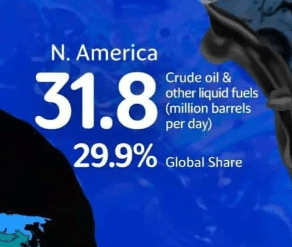 Северная Америка является крупнейшим нефтедобывающим регионом мира: в 2025 году на нее пришлось 29,9% глобального производства, что составляет в среднем 31,8 миллиона баррелей в сутки. Значительная часть этих объемов приходится на Соединенные Штаты, где добыча нефти в 2025 году достигла рекордных значений. За последние два десятилетия производство здесь более чем удвоилось, главным образом благодаря активному развитию сланцевой добычи. Канада также установила новый рекорд: в декабре 2025 года ее добыча достигла пяти миллионов баррелей в сутки.