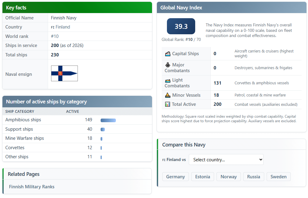 В рейтинг также входят Южная Корея, Турция, Индонезия и Финляндия, чьи флоты в основном ориентированы на региональную оборону и морскую безопасность.