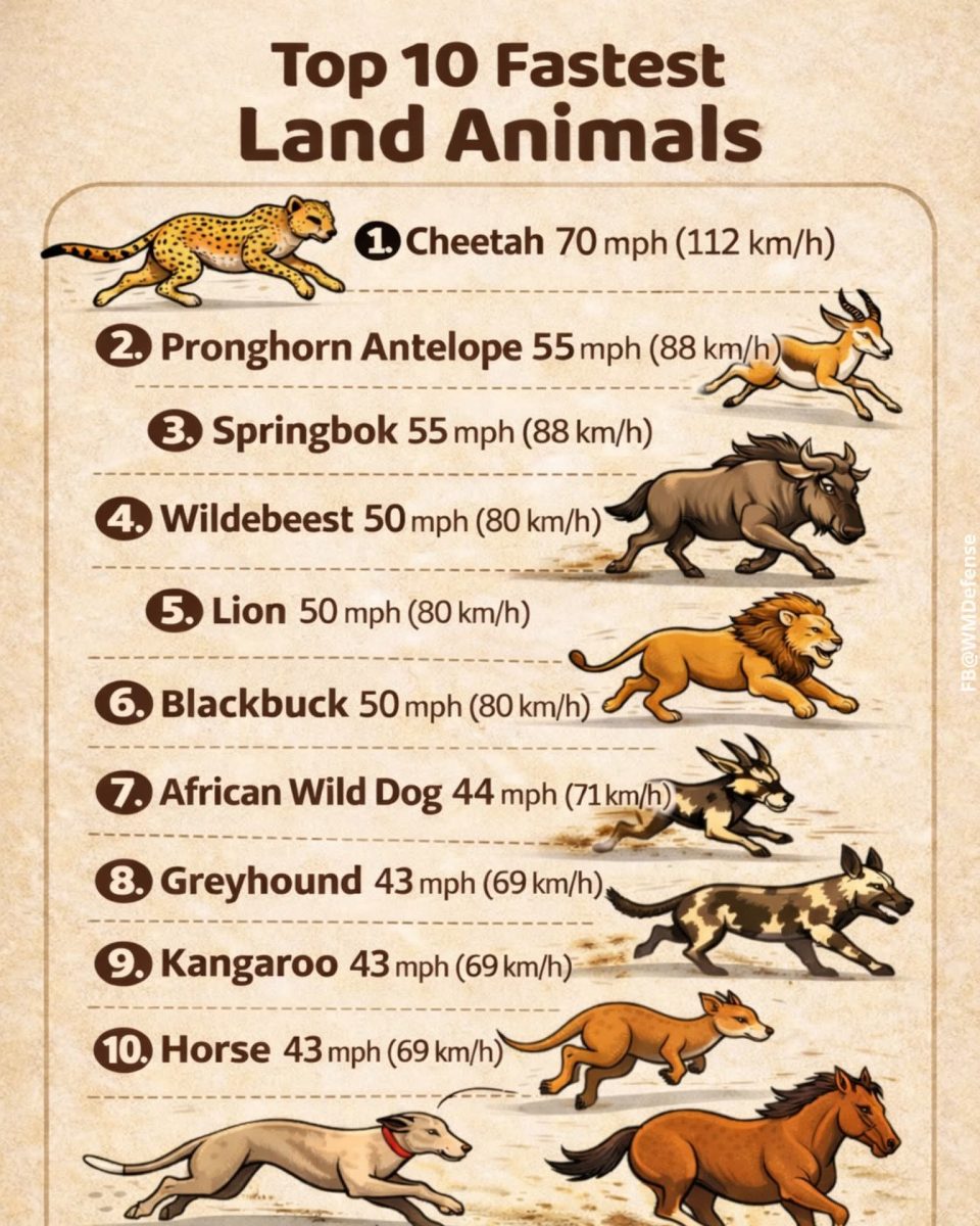 Инфографика: самые быстрые сухопутные животные в мире