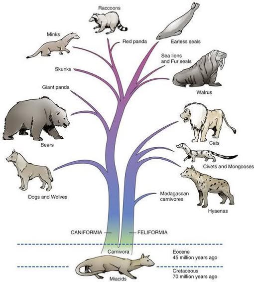 Alexei, нетрудно погуглить что медведь действительно Caniformia то есть относится к отряду собакообразных и когда-то у них был общий предок - мелкая доисторическая живность похожая то ли на куницу, то ли на росомаху. Забавно что и тюлени там же. ------------------- Все млекопитающие отряда хищных ведут своё начало от группы примитивных куницеподобных хищников, известных как миациды (Miacidae) и живших в палеоцене — эоцене, к олигоцену дав начало предкам современных хищных. Собственно медведи относятся к подотряду Caniformia, представители которого, предположительно, произошли от общего собакоподобного предка. Происхождение медведей прослеживается до Cephalogale, зверька размером с енота, жившего в середине олигоцена — начале миоцена (20—30 млн лет назад) в Европе. От него произошёл род Ursavus, хищников размером со среднюю собаку, чьи ископаемые остатки известны из среднемиоценовых отложений Евразии.
