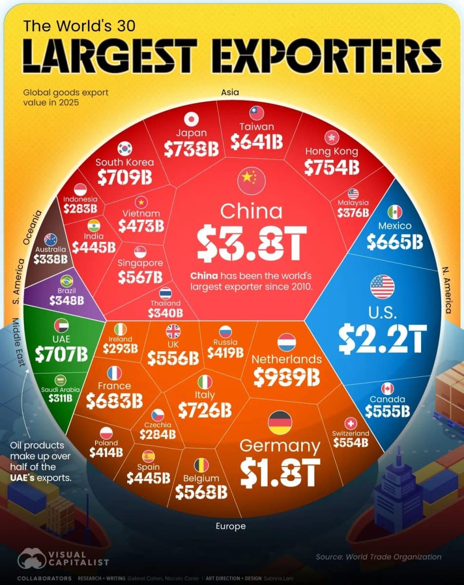 Инфографика: крупнейшие экспортеры мира в 2025 году