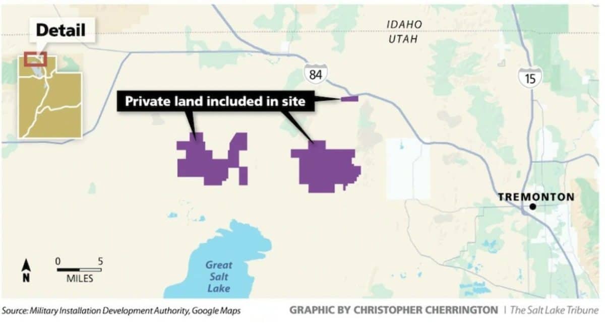 Кластер хотят построить на территории площадью около 162 квадратных километров. Частные землевладельцы уже согласились на использование своей земли. Проект также рассчитывает на примерно 4,9 квадратных километра, включающих испытательный полигон Министерства обороны США и земли, принадлежащие Управлению земельных трастов штата (Utah Trust Lands Administration).
