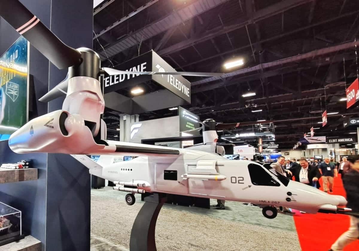 Макет новой версии MV-75 демонстрируется на ежегодной выставке Modern Day Marine в Вашингтоне. Он выполнен в окраске эскадрильи HMLA-267, которая сегодня эксплуатирует AH-1Z и UH-1Y для ударных и вспомогательных задач.