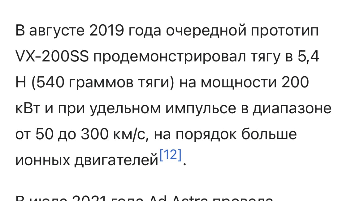 Автор безграмотный. "С невероятным и по современным ракетным меркам удельным импульсом в 55 километров в секунду (это на порядок выше, скажем, Starship)" Не знает что такое удельный импульс, в каких единицах он измеряется, характеристикой чего является и чем отличается от скорости истечения. Дальше читать не стал, ответ на вопрос "почему у нас до сих пор что-то не летает" будем считать получил) UPD. Ладно, формально в м/с тоже можно удельный импульс мерять, хотя в ракетостроении так не принято. Всегда все в секундах приводят значения. И вопрос к чему это сравнение удельного импульса электрореактивного двигателя (ничем не выдающегося, это типичное значение для электрореактивного двигателя) с химическим - остается. Особенно без упоминания того, насколько порядков меньше тяга у электродвигателей.